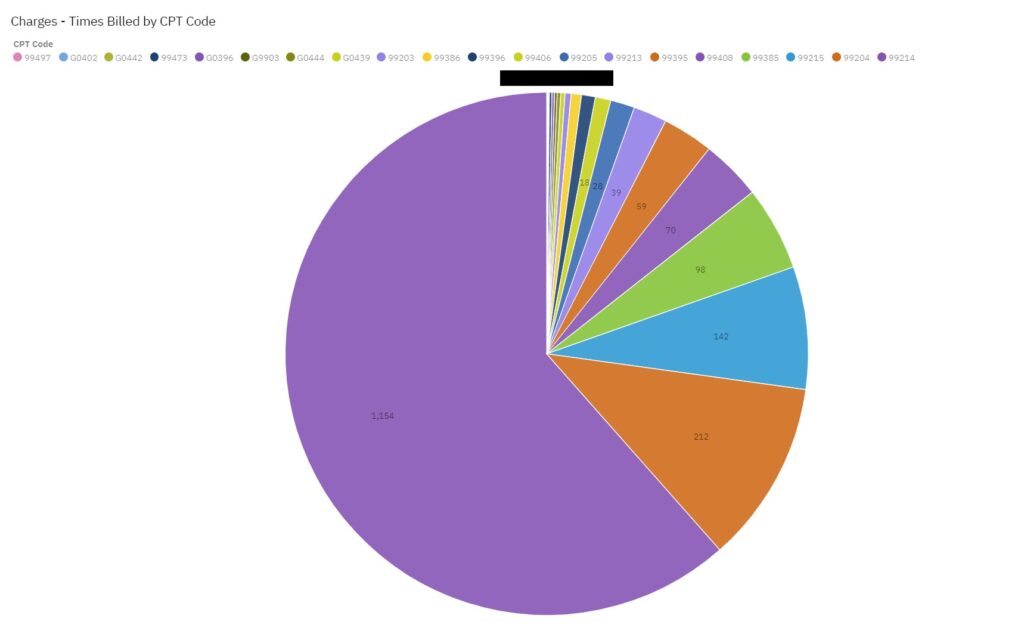 For example, above I created a way to see what the codes each provider is billing for. I can quickly see the level of acuity of visits that someone is seeing based on these codes and compare them to any other doctor in the practice.