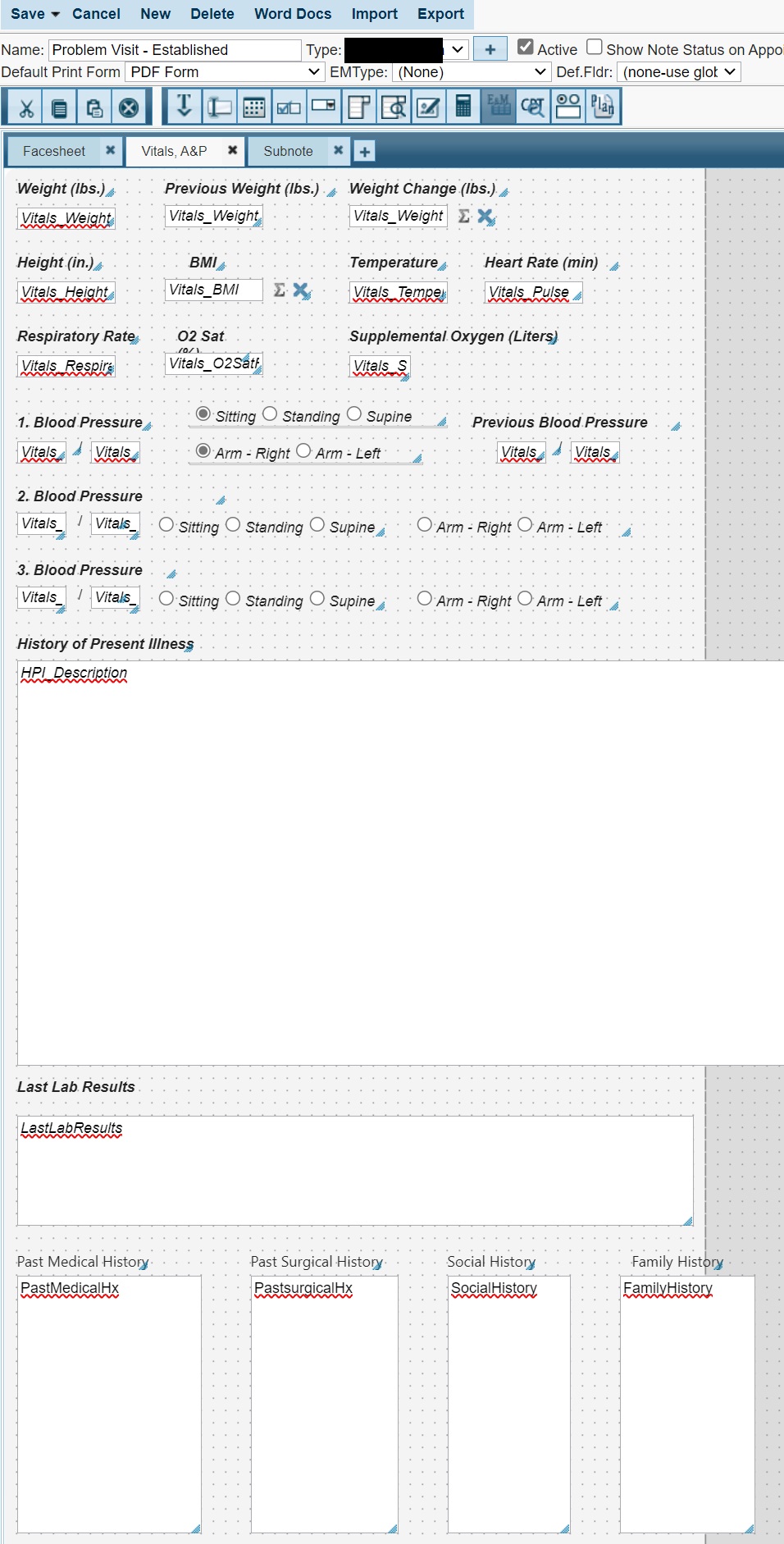 In the default / predefined you can see I put in [LastLabResults]. In another area in the medical record backend, I have defined what those results are and will be automatically pulled into the note in that section.