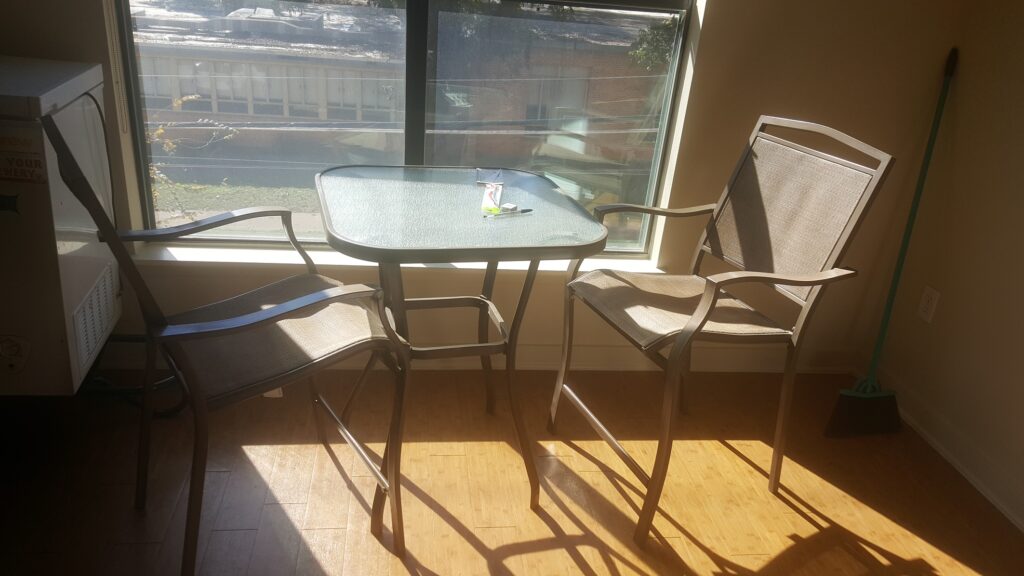 My desk isn’t bad (Also secondhand) but this chair is the only piece of furniture I have in my apartment other than by bed, the patio furniture, and two side tables.